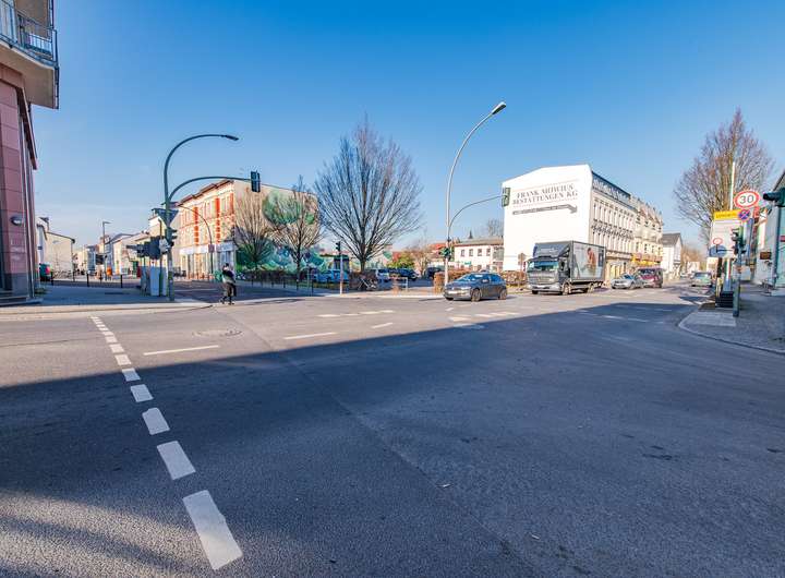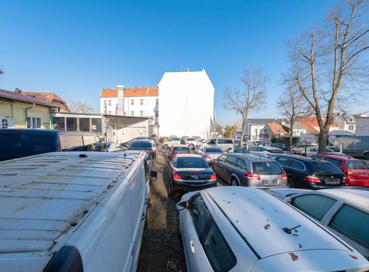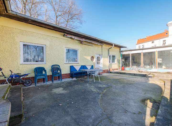 Alternativ kann das gesamte Grundstück freigeräumt und als Baufläche genutzt werden. Laut Flächennutzungsplan ist es als Wohnbaufläche W3 (GFZ bis 0,8) und W4 (GFZ bis 0,4) ausgewiesen. Entlang der Grünauer Straße besteht zudem eine Einzelhandelskonzentration, was weitere Entwicklungsmöglichkeiten eröffnet.