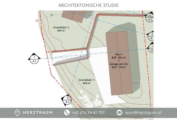 Für das Grundstück liegt eine Machbarkeitsstudie vor, die den Bau eines hochwertigen Wohnhauses mit moderner, offener Architektur vorsieht. Großzügige Glasflächen und eine durchdachte Ausrichtung maximieren den traumhaften Seeblick und schaffen ein einmaliges Wohnambiente.