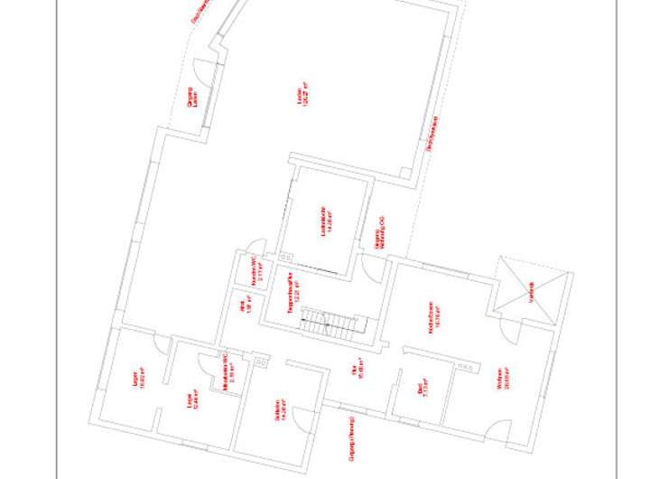 Laden, Ladenküche, Kunden-WC, Mitarbeiter-WC und 2 Lagerräume