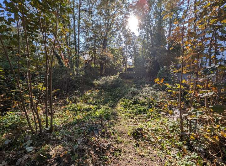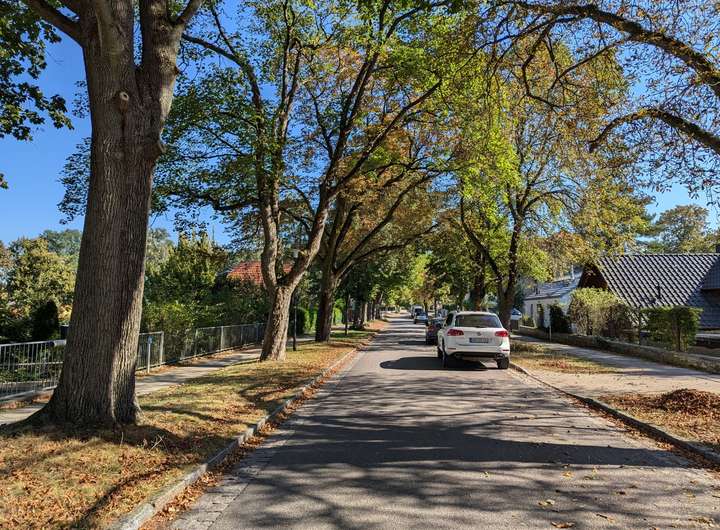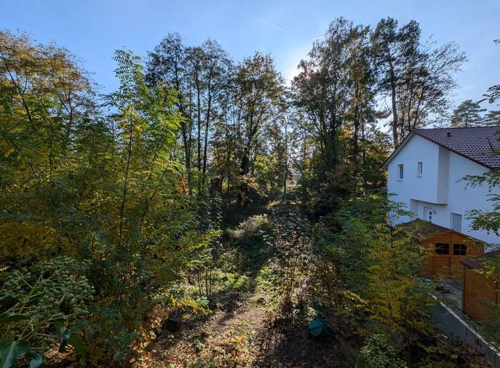 Dieses sehr schöne Grundstück mit einer Größe von 600 m² bietet eine perfekte Kombination aus naturnahem Wohnen und optimaler Infrastruktur. Die Südlage sorgt für eine helle, freundliche Atmosphäre, wodurch ein besonderes Lichtspiel auf dem Grundstück entsteht. Die Sonne durchdringt das Grundstück, während das Blätterdach der umliegenden Bäume gleichzeitig für angenehme Temperaturen sorgt. So genießt man viel Licht und Helligkeit ohne übermäßige Hitzeentwicklung.