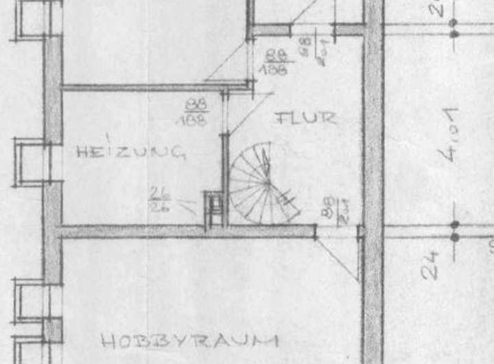 - Kellergeschoss: Flur und 4 Kellerräume.