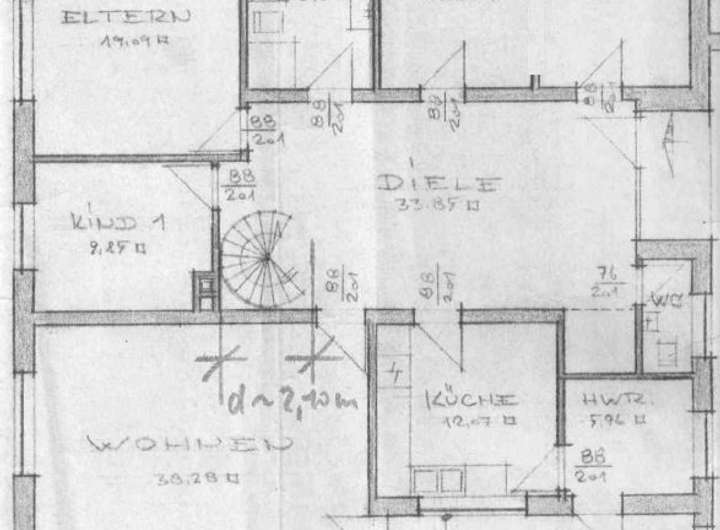 - Erdgeschoss: Essdiele, Gäste-WC, Küche, Wintergarten, Hauswirtschaftsraum, Wohn- und Esszimmer, Elternschlafzimmer und 2 Kinderzimmer.