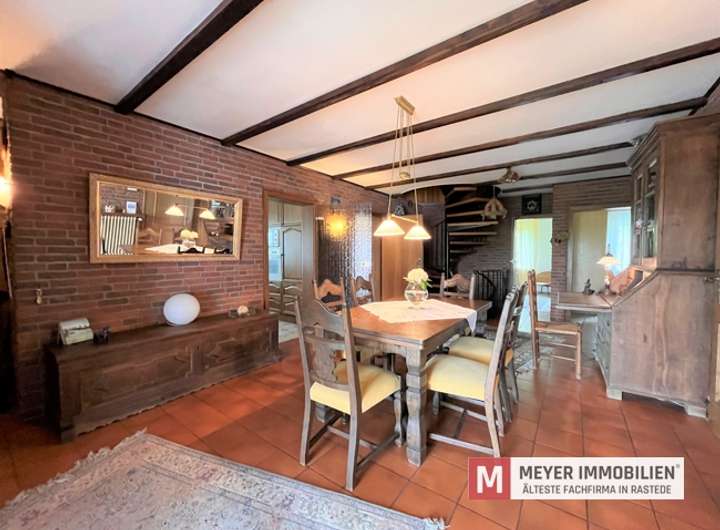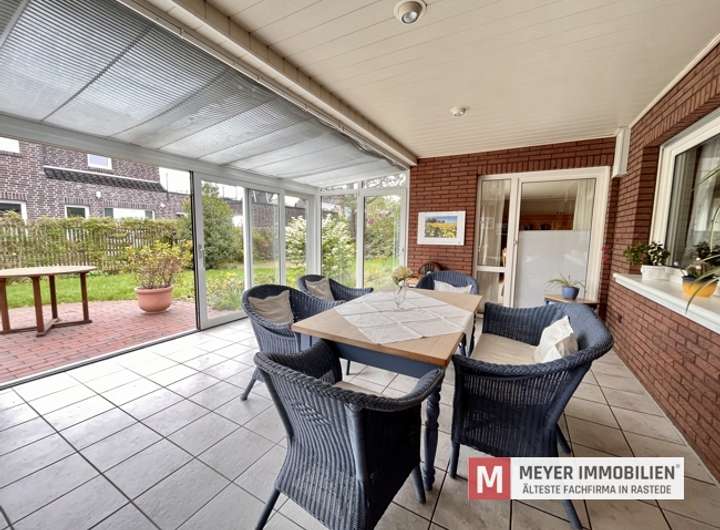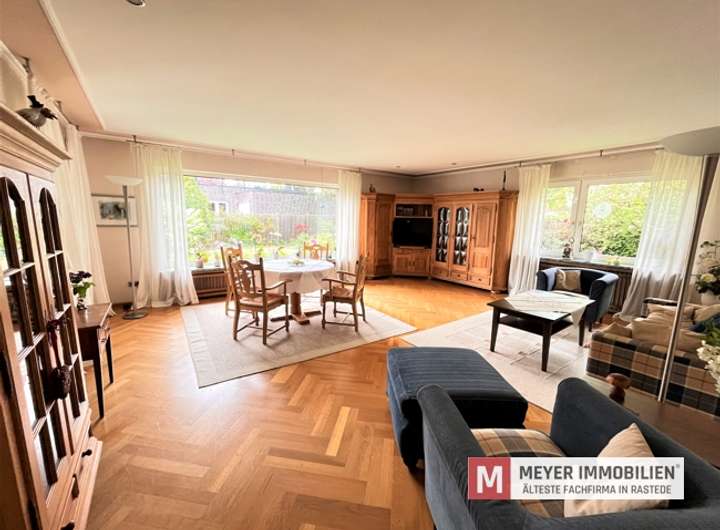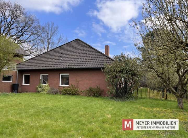 Dieser stilvolle Bungalow bietet großzügiges Wohnen auf einer Ebene. Der separate Anbau beherbergt nicht nur vier geräumige Garagen, sondern auch eine eigenständige 3-Zimmer-Wohnung mit Balkon – ideal für Mehrgenerationenwohnen oder zur Generierung von Mieteinnahmen.