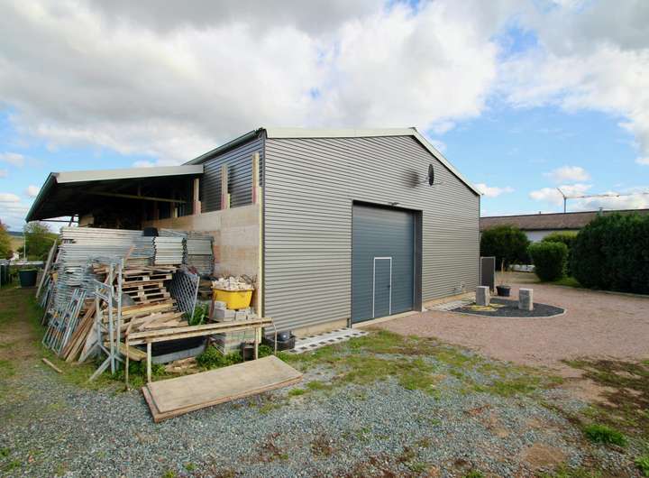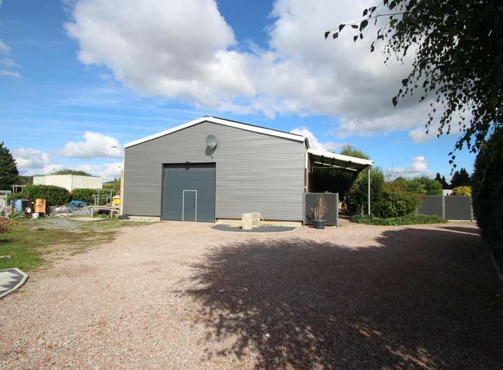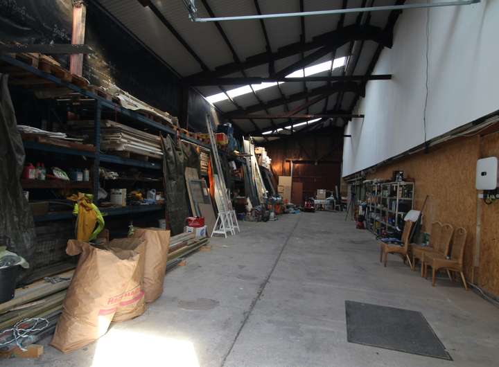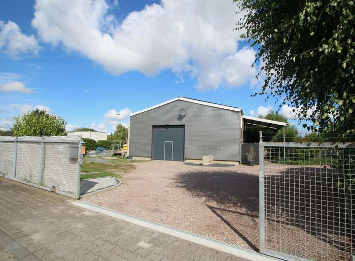 Die Halle bietet 200 m²und ist ideal für Lager oder Produktionszwecke. Sie ist großzügig gestaltet und bietet vielfältige Nutzungsmöglichkeiten für Gewerbe.
