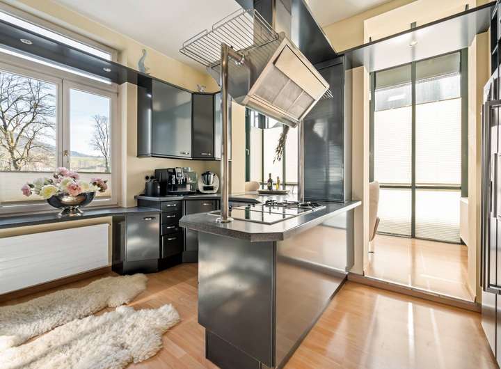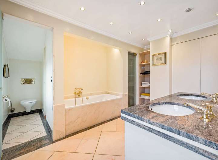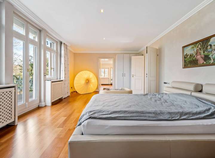 Der großzügige Wohn- und Essbereich besticht durch hohe Decken und ein beeindruckendes Raumgefühl. Zwei hochwertig ausgestattete Küchen vereinen moderne Funktionalität mit stilvoller Eleganz. Die Villa verfügt über 11 Zimmer, darunter großzügige Schlafzimmer mit Ankleiden, lichtdurchflutete Wohnräume und vielseitig nutzbare Bereiche wie Arbeits- oder Bibliothekszimmer.