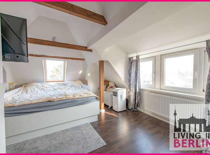 Das Dachgeschoss wurde nachträglich ausgebaut und bietet im Flurbereich mit vorhandenen Einbauschränken viel Stauraum. Das Zimmer wäre eine perfekte Oase für Ihren lieben Nachwuchs. Durch die verbauten Balken wird ein angenehmer Charme versprüht und man fühlt sich richtig heimisch.