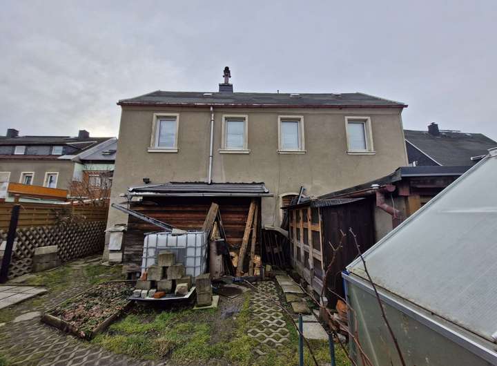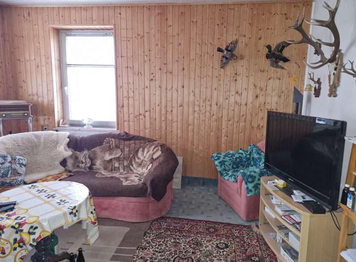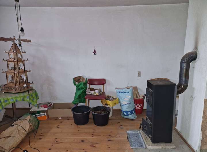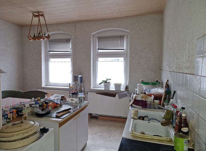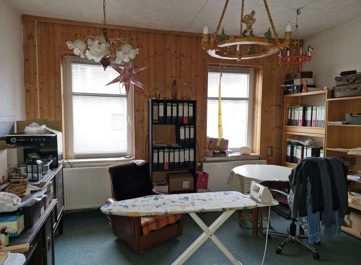 Das Objekt verfügt über ein Haupthaus sowie einen großen Anbau, welche zusammen über ca. 200 m² Wohnfläche verfügen. Im Haupthaus befindet sich ein ehemaliger Lebensmitteladen, welcher nach Sanierung des Objektes wieder als Gewerbe genutzt werden könnte, z.B. biete sich hier ein kleines Büro für Versicherungen an. Weiterhin verfügt das Haupthaus über eine große Wohnung im Obergeschoss mit Badezimmer, Küche, Wohnzimmer mit Kamin, Flur und zwei Schlafzimmern. Diese Wohnung ist aktuell bewohnt, hier wurde 2003 eine Gastherme installiert und das Badezimmer modernisiert. Diese Wohnung ließe sich nach einer groben Renovierung theoretisch vorübergehend nutzen. Im Dachgeschoss befindet sich eine weitere Wohnung, welche jedoch nicht dem aktuellen Wohnstandard entspricht und komplett saniert werden muss. Ein Spitzboden sorgt hier für zusätzlichen Stauraum. Das Haupthaus ist vollständig unterkellert und auch im Erdgeschoss gibt es weitere Zimmer, welche zum Abstellen und Lagern genutzt werden können.