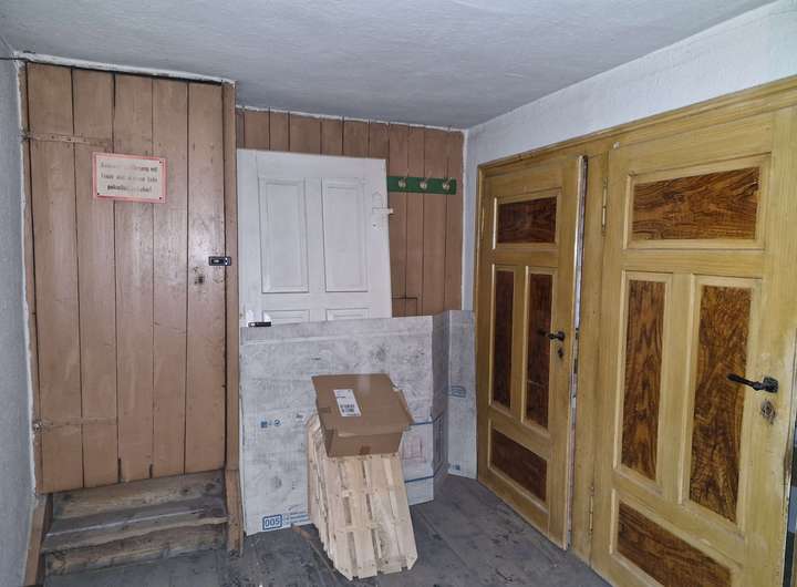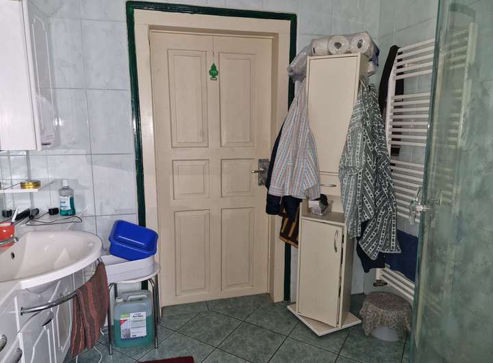 Über das Treppenhaus ist das Haupthaus mit dem Anbau verbunden, hier befindet sich eine weitere Wohnung mit Bad, Schlafzimmer, Wohnzimmer, Küche und Flur. Auch diese Wohnung befindet sich in einem sanierungsbedürftigen Zustand.