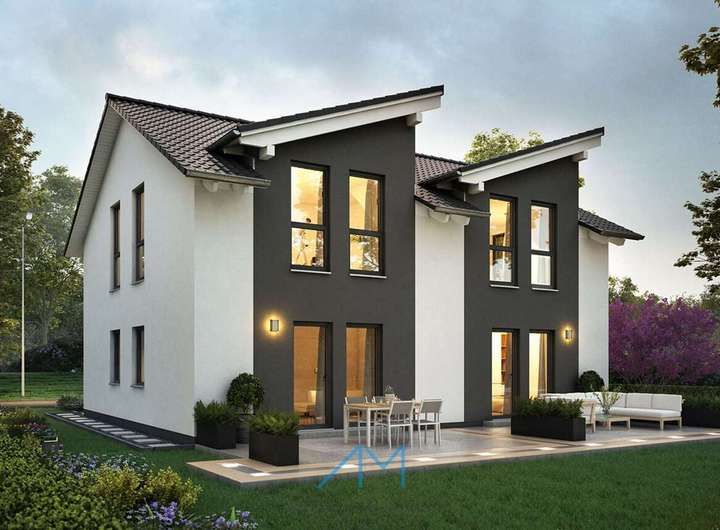 Das Besondere an diesem Haus ist, dass es sich perfekt für zwei Familien eignet. Die Baufamilien können den Grundriss des Hauses nach eigenem Geschmack variieren und vielfältige Architektur-Upgrades einplanen. Vom Wintergartenelement über den Traufenerker bis zur Doppelgarage - hier sind der Fantasie keine Grenzen gesetzt.