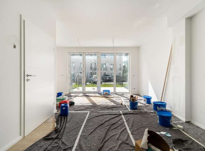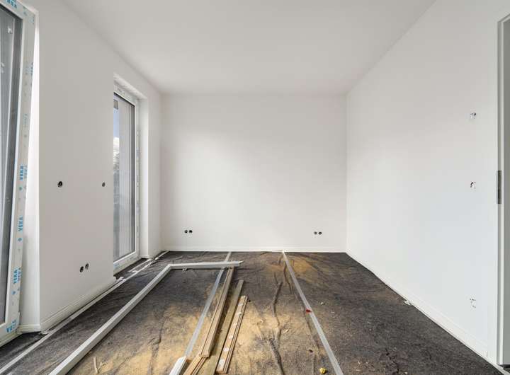 Das Reihenhaus beeindruckt durch eine offene und großzügige Raumgestaltung, die viel Raum für Ihre individuellen Ideen lässt. Der Grundriss im Erdgeschoss, geprägt von einem großzügigen Wohnbereich, bildet das Zentrum des Familienlebens. Bodentiefe Fenster und Türen sorgen für ein helles und einladendes Ambiente und ermöglichen einen direkten Zugang zur Terrasse und zum Garten, wo das Familienleben im Grünen genossen werden kann.
