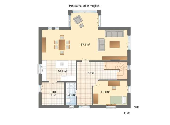 Bitte beachten Sie, dass die dargestellten Bilder und Grundrisse nur beispielhaft sind und unter Umständen Sonderbauteile enthalten, die nicht im aufgerufenen Preis inkludiert sind.