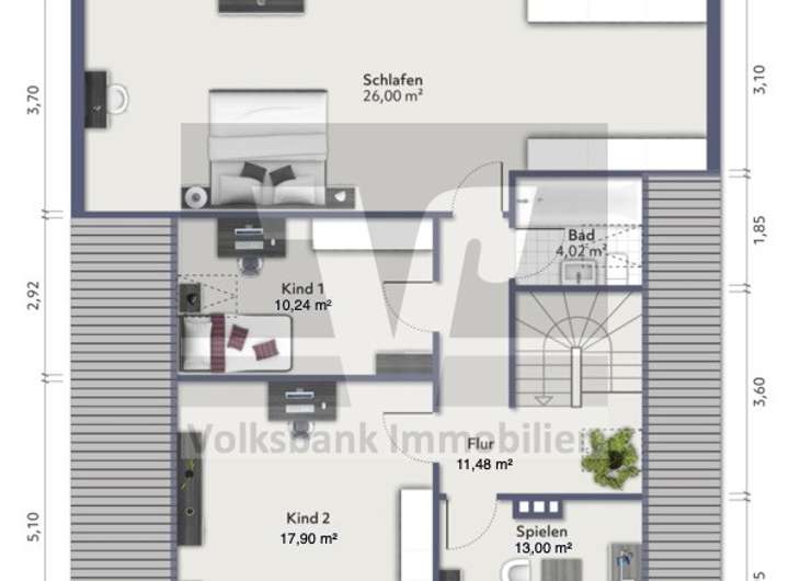 Im Obergeschoss sind noch Renovierungsarbeiten erforderlich – ideal für Käufer, die eigene Wohnideen umsetzen möchten.