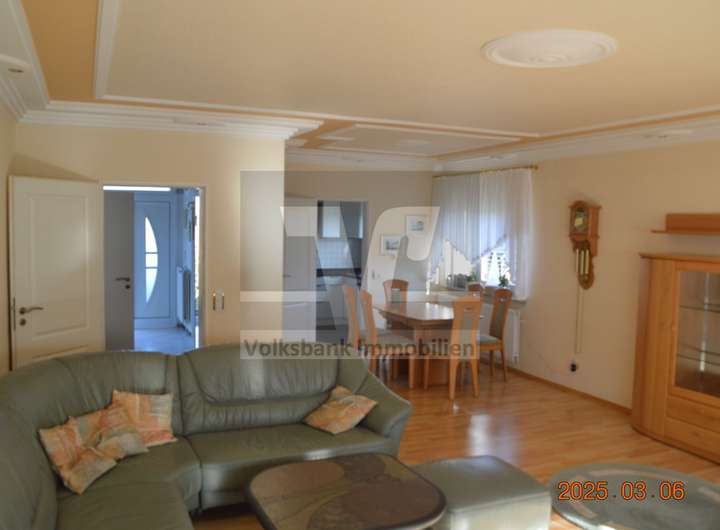 Es befindet sich auf einem gepflegten Grundstück mit pflegeleicht angelegtem Garten und bietet großzügigen Wohnraum sowie eine große Doppelgarage.
