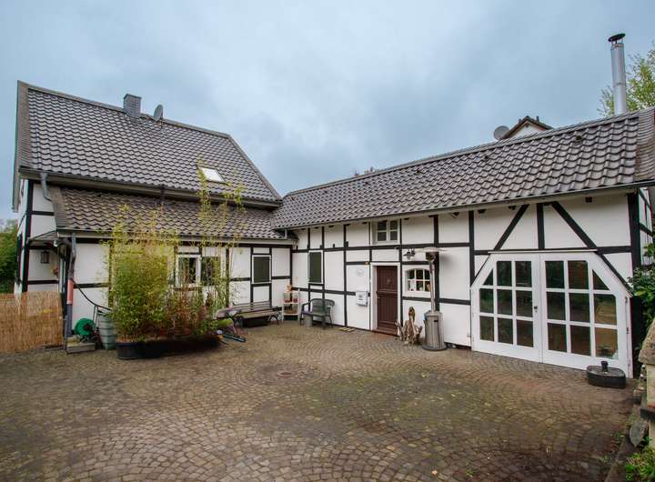 Im Jahr 1890 erbaut und in liebevoller Weise gepflegt, bietet dieses traditionelle Fachwerkhaus auf ca. 182 m² Wohnfläche überdurchschnittlich viel Platz. In bevorzugter Randlage der Blütenstadt Leichlingen, hat man hier die seltene Gelegenheit im „Dorf“ zu wohnen ohne auf moderne Annehmlichkeiten der Stadt verzichten zu müssen. Ideal für Menschen, die das ländliche Leben schätzen, um die umliegenden Wiesen und Wälder zu erkunden. Das Hauptgebäude beherbergt eine Wohneinheit im Erdgeschoss sowie eine im Obergeschoss inklusive Spitzboden. Eine weitere Wohneinheit auf zwei Etagen entstand 1993 durch den Ausbau des ehemaligen Stallgebäudes. Das Anwesen besteht somit aus drei separaten Wohneinheiten, die jedem Bewohner Privatsphäre und Raum für ihren individuellen Lebensstil bieten. Der jeweils separate Eingang spricht hier für sich. Der malerische Innenhof, der einen einladenden Bauernhof-Charakter ausstrahlt, lädt dabei zum Verweilen und Entspannen ein. Für Fahrzeuge stehen drei Stellplätze zur Verfügung. Weitere Stellmöglichkeiten befinden sich im großzügigen Innenhof. Die bisher stattgefundenen umfangreichen Sanierungsarbeiten gewährleisten langfristige Zuverlässigkeit und Schutz vor den Elementen. So wurde 2006/07 das Dach inklusive Dämmung erneuert. Um den Energieverbrauch weiter zu reduzieren und den Wohnkomfort zu erhöhen wurden zeitgleich die Außenwände des Hauses fachmännisch gedämmt, einschließlich dem Wiederaufbau der attraktiven Fachwerkfassade. Jede Wohneinheit verfügt zudem über eine eigene Gastherme (inklusive Warmwasser) sowie eigene Verbrauchszähler für Gas/Wasser/Strom, was Flexibilität und Unabhängigkeit gewährleistet. Die Fenster wurden größtenteils 1993-95 erneuert. Einige wenige erhaltungswürdige Fenster sind noch 1-fach verglast, welche den Charme des Hauses optimal unterstreichen. Auch der Anbau überzeugt durch den Einbau einer traditionellen Klöntür. Im Inneren befindet sich zudem ein Kamin, der durch das offene Dachgeschoss optimale Wärmeverteilung verspricht. Von der Empore im Dachgeschoss hat man einen wunderbaren Blick in den Wohnbereich auf der unteren Ebene, die mit einer Fußbodenheizung ausgestattet ist. Die Mieteinnahmen belaufen sich derzeit auf ca. 20.500 Euro p. a. und wurden zuletzt im August 2023 erhöht. Gerne stellen wir Ihnen bei Interesse weitere Bilder und Unterlagen zu der Immobilie zur Verfügung. Ihr Engel & Völkers Team in Leichlingen freut sich auf Ihre Kontaktaufnahme.