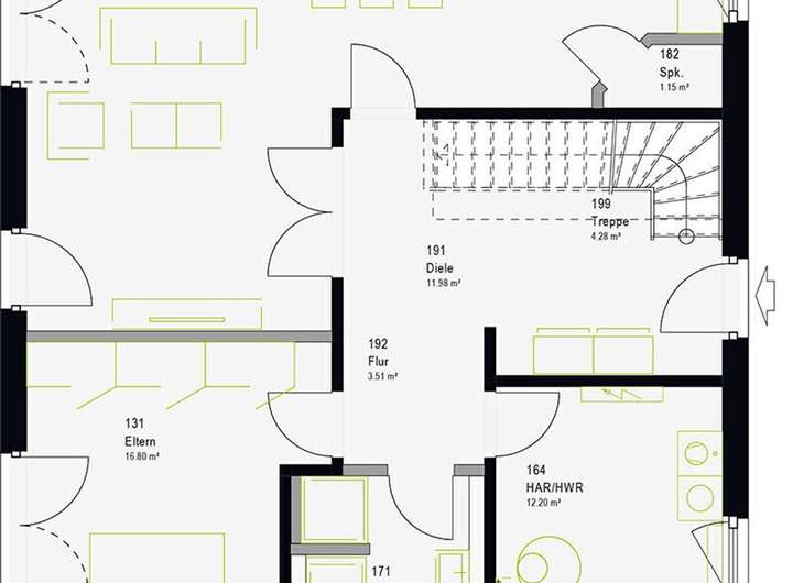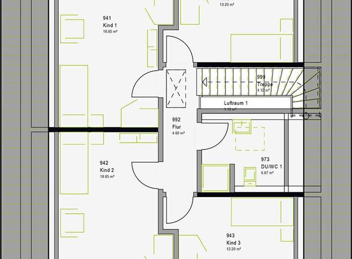 Die beiden Bäder mit Dusche sorgen dafür, dass es morgens keinen Stau gibt und jeder pünktlich aus dem Haus kommt. Der Grundriss des Hauses ist variabel und kann nach Ihren Wünschen gestaltet werden. Wie wäre es zum Beispiel mit einem Wintergarten, einem Erker oder einer Loggia? Hier sind Ihrer Kreativität keine Grenzen gesetzt.