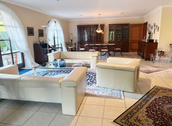 rd. 1.000 m² vom Gartenarchitekt angelegtes Grundstück, Süd-West Ausrichtung in einer absolut ruhigen Sackgassen Höhenlage, ca. 3 km von den Uni Instituten, nahezu 500 m² Wohn-/Nutzfläche, großzügiger Eingangsbereich mit offener Galerie zum OG, großzügige Räume, z. B. 70 m² Wohn-/Esszimmer, Kaminzimmer ca. 25 m², 2 Kinderzimmer als Maisonetten Einheit (d. h. Kinderzimmer + Kinderschlafzimmer jeweils), jeweils mit Balkon, 2 Arbeitszimmer, großzügige Küche und Vorratsraum, Wäschekeller, Archiv, Einlieger Wohnung, Kinderspielzimmer im Souterrain, hoher Sicherheitsstandard im und um das ganze Anwesen, 3-PKW-Garage, alles in sehr wertigem Qualitätsstandard der Materialien bis hin zu Fußbodenheizung über alles, Klima im Schlafzimmer u. u. u.