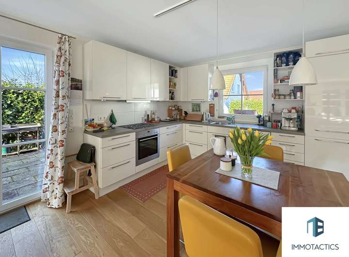Die moderne Einbauküche lässt keine Wünsche offen. Sie ist mit hochwertigen Geräten ausgestattet und bietet viel Arbeitsfläche für Kochbegeisterte. Hier können Sie gemeinsam mit Familie und Freunden kulinarische Erlebnisse genießen.