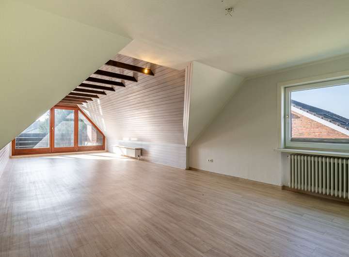 Im Obergeschoss befinden sich zwei weitere Schlaf- oder Wohnräume, ein Badezimmer mit Badewanne sowie ein heller Freizeitraum, der sich oberhalb des Kaminzimmers befindet und vielseitig genutzt werden kann.