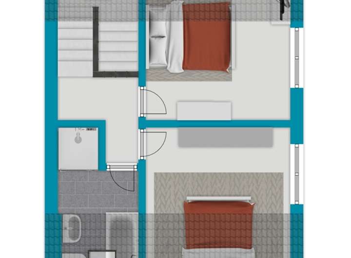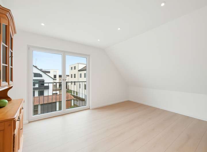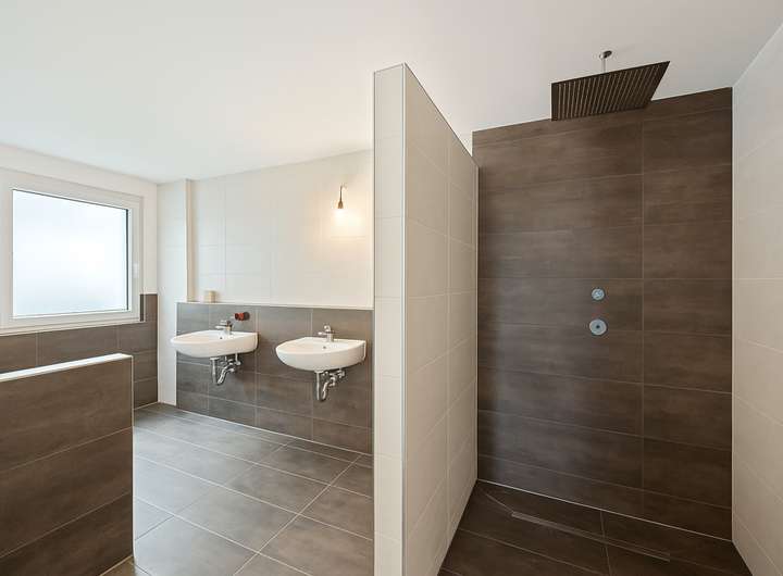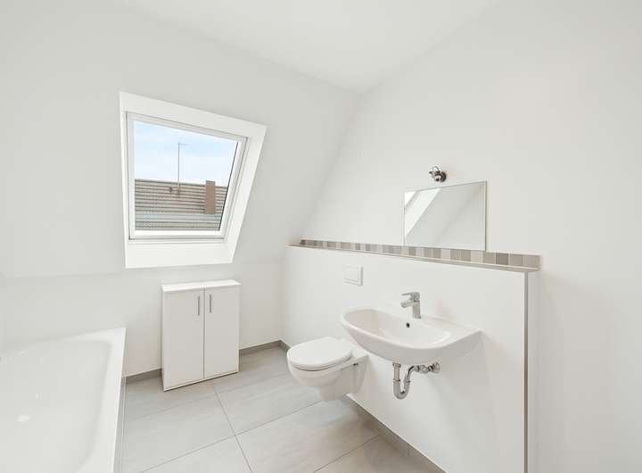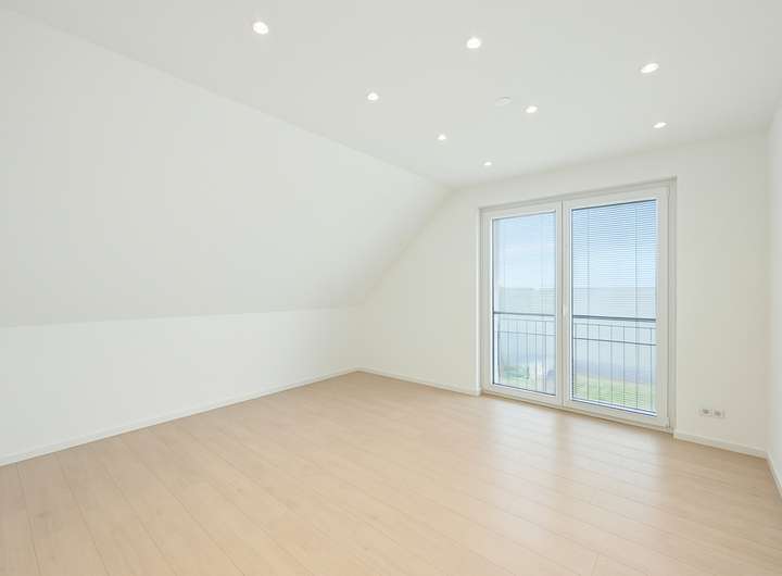 Einzelne Elektroinstallationen und Sanitäreinrichtungen in den Bädern sind noch nicht vollständig abgeschlossen, sodass Sie hier Ihre individuellen Vorstellungen einbringen können. Auch das Treppengeländer sowie der Terrassenbereich lassen noch Raum für kreative Gestaltungsmöglichkeiten.