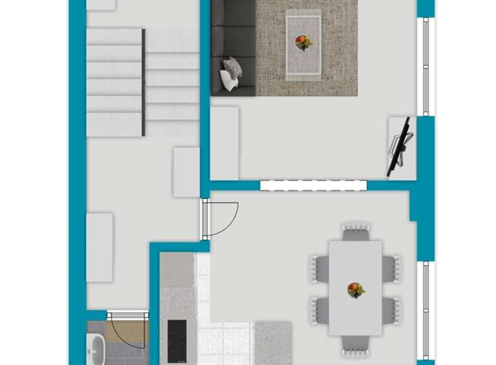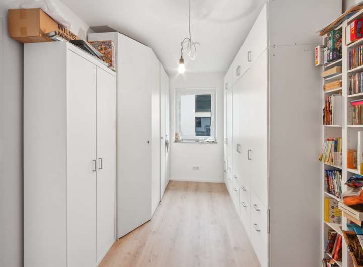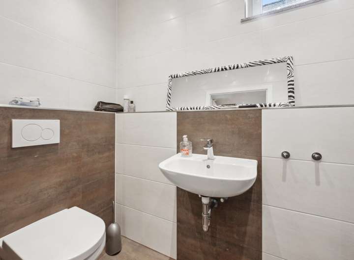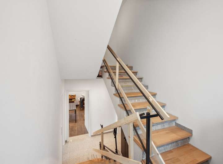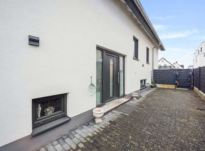 Das Haus überzeugt mit bodentiefen Fenstern, die für eine lichtdurchflutete Atmosphäre sorgen. Die Dreifachverglasung und die elektrischen Rollläden bieten sowohl Komfort als auch Energieeffizienz. In allen Wohnbereichen wurde ein hochwertiger PVC-Boden in Holzoptik verlegt, während in den Sanitärbereichen pflegeleichte Fliesen für eine moderne und zugleich praktische Gestaltung sorgen. Der Feinputz an den Wänden unterstreicht das elegante Raumgefühl.
