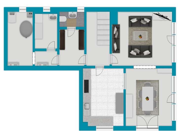 • insgesamt drei Badezimmer (Dusch- und Wannenbad) + drei Toiletten – alle mit Fenstern für natürliche Belüftung und Helligkeit