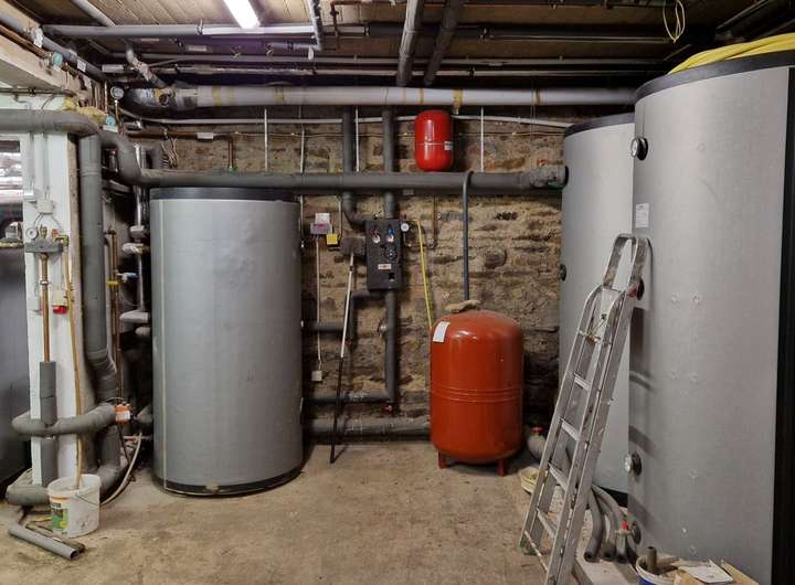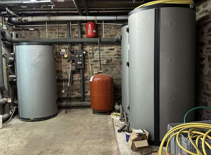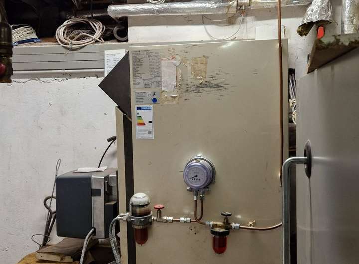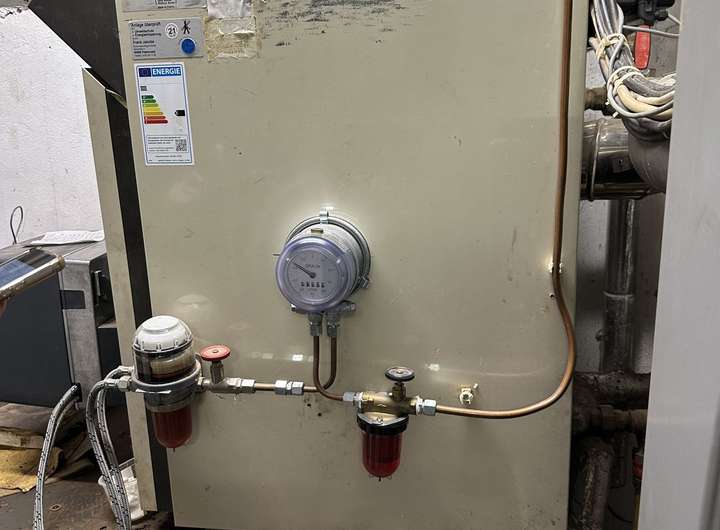 Ölzentralheizung (Niedertemperatur Heizkessle aus 1994/Brenner in 2018 erneuert); Kombinierbar mit einem Festbrennstoffofen (Holz) mit einer Nennleistung von 40 KW