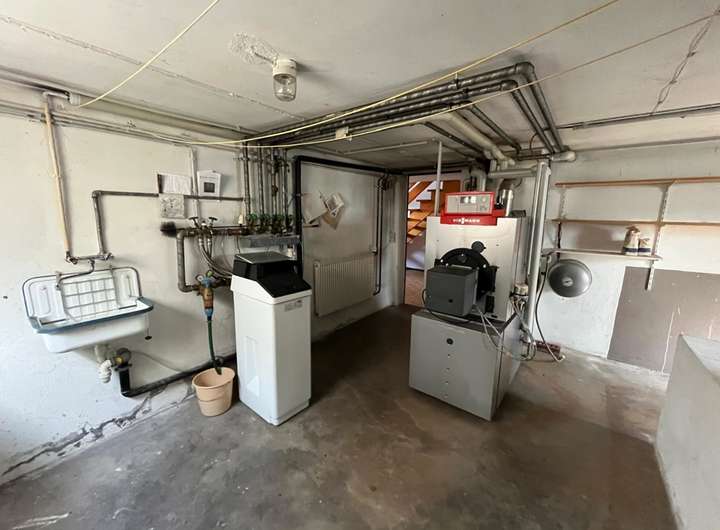 Der Ingenieur, der das Haus für sich und seine Familie plante, legte großen Wert auf Funktionalität, er nutzte das Büro im Untergeschoss für Homeoffice. Der Naturkeller im Untergeschoss dient durch ganzjährig gleichbleibende Temperaturen zur Lagerung von Lebensmitteln. Der kürzlich eingebaute Schwedenofen im Wohnzimmer bietet in der Übergangszeit eine wohlige Wärme. Eine Entkalkungsanlage sorgt für enthärtetes Wasser im ganzen Haus. Der Wintergarten auf der Terrasse bietet in den kühleren Monaten eine wunderbare Möglichkeit, draußen zu sein. Hier genießen Sie bei schönem Wetter den ganzen Tag die Sonne!