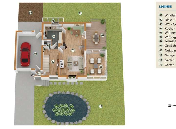 Einkäufe können Sie durch den großen Dachüberstand über der Garage trockenen Fußes ins Haus bringen.