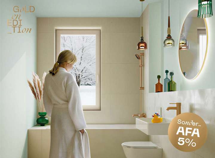 + Bäder mit großformatigen Fliesen und wahlweise optischen Highlights in 3-D-Optik