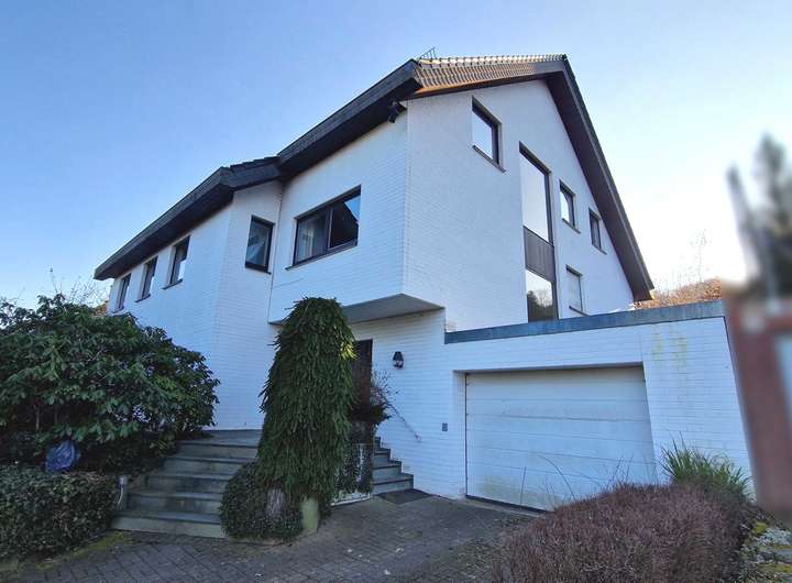 In guter Wohnlage, nahe des St. Ansgar Krankenhauses, von Höxter steht dieses, ca. 1984 erbaute Zweifamilienhaus auf einem ca. 1.156 m² großen Grundstück. Die Immobilie verfügt über zwei getrennte Wohneinheiten. In dem Obergeschoss finden Sie sehr großzügig geschnittene Räumlichkeiten mit einer Wohnfläche von ca. 144 m². Dort erwarten Sie ein großer Wohn- und Essbereich mit einem Kamin und Zugang zu einer Pergola, ein Schlafzimmer, ebenfalls mit einer Terrassentür und großen, bodentiefen Fenstern, ein Badezimmer mit zwei Waschbecken und Dusche, ein Gäste-WC mit Dusche, eine Küche mit Essbereich und Ausgang auf den Freisitz, ein Hauswirtschaftsraum, ein Durchgangszimmer mit Einbauschränken, ein Arbeitszimmer sowie ein großer Flurbereich mit Garderobe. Über das Treppenhaus gelangen Sie in das Dachgeschoss, welches zuletzt vermietet war. Dort finden Sie auf ca. 84 m² Wohnfläche eine Küche, ein Bad mit Dusche, ein Bad mit Badewanne und zwei große Schlafzimmer mit Glasfronten sowie Ausgängen auf den überdachten Balkon. Von diesem Balkon aus haben Sie eine wunderschöne Aussicht in das Weserbergland. Auf dieser Etage befinden sich zudem zwei weiteren Räumen, die nicht in der offiziellen Wohnflächenberechnung enthalten sind. Genügend Lagerfläche finden Sie im Spitzboden des Hauses.