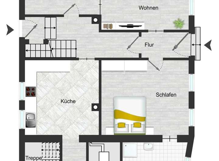 Zwei Zugänge (über Straße und Hof) bieten weiterhin die Möglichkeit, einen Teil gewerblich zu nutzen.