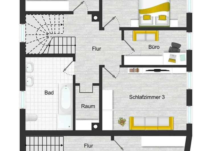 Die hellen Räume profitieren von großen Fenstern, die viel Tageslicht hereinlassen und eine angenehme Wohnatmosphäre schaffen.