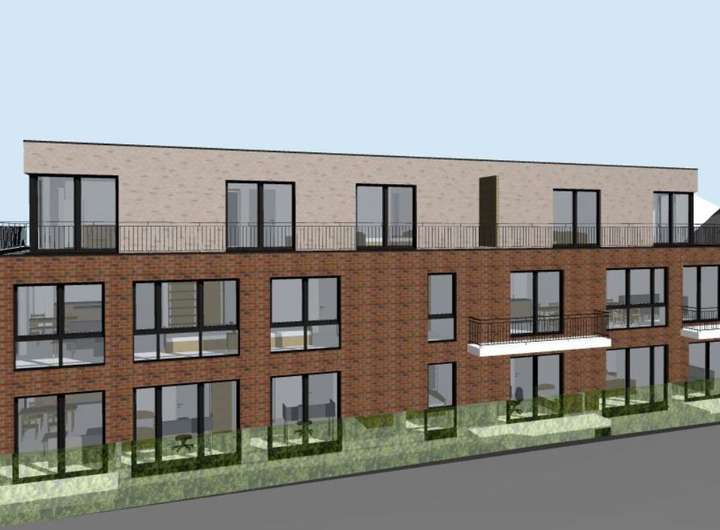 - Genehmigt ist eine Wohnfläche von ca. 720 m², aufgeteilt auf neun Wohneinheiten