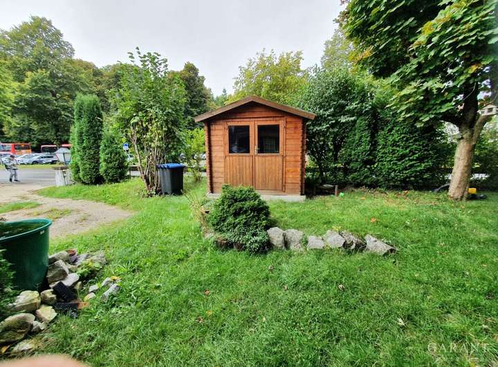 Im Kellerbereich befinden sich neben dem Heiz- und Öltankraum zwei Anschlüsse für Waschmaschinen, Kellerabteile für die Wohnungen sind nicht vorhanden. Zwei Gartenhäuschen schaffen Lagermöglichkeit für die Wohnungen im Erdgeschoss- und Obergeschoss-Bereich. Das Anwesen verfügt über drei Stellplätze im Außenbereich.