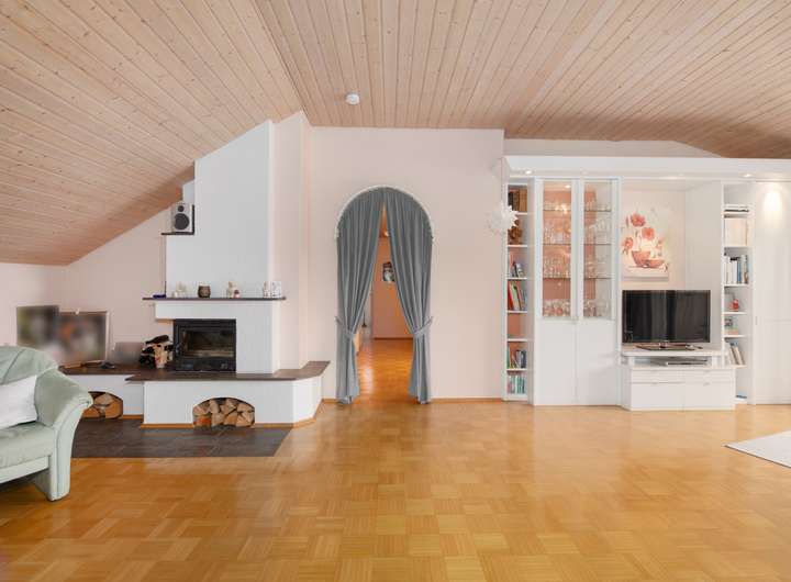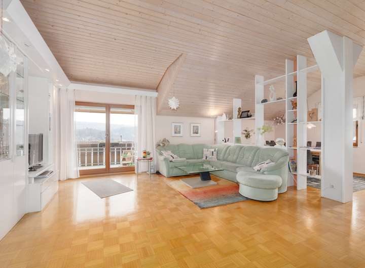 Willkommen in Ihrem neuen Zuhause – einer liebevoll gepflegten 3,5-Zimmer Dachgeschoss-Wohnung mit ca. 104 m² Wohnfläche, die zum Träumen einlädt. Diese Wohnung ist ein wahrer Rückzugsort, eingebettet in eine ruhige Umgebung, die Ihnen dennoch eine hervorragende öffentliche Anbindung bietet.