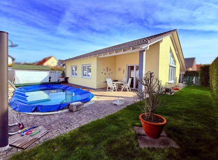 Speziell konzipiert für altersgerechtes Wohnen, erstreckt sich der vermietete Bungalow aus dem Baujahr 2010 auf einer Wohnfläche von ca. 118 m² und befindet sich auf einem 327 m² großem Grundstück mit wunderschönem Garten inklusive Pool und Gartenhäuschen.