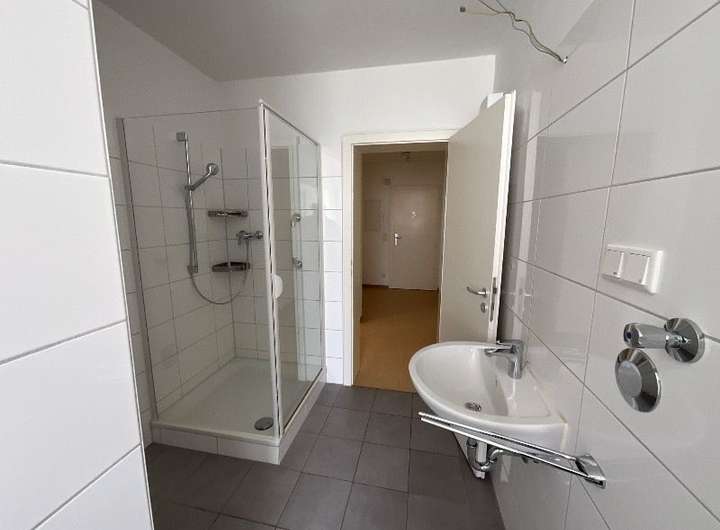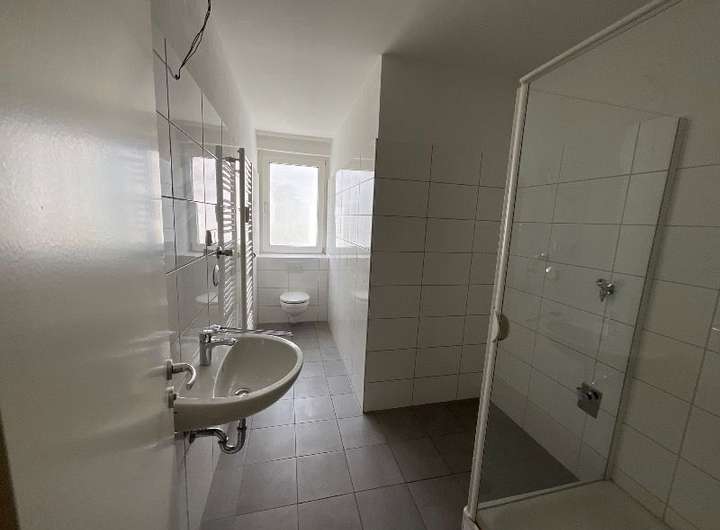 Die 1-Zimmerwohnung kann ab 60 Jahren mit gültigen WBS-Schein angemietet werden. Das Badezimmer ist mit einer Dusche und einem Waschmaschienenanschluss ausgestattet. Es ist hell gefliest und verfügt über ein Fenster. Der Balkon lädt zum entspannen im freien ein.