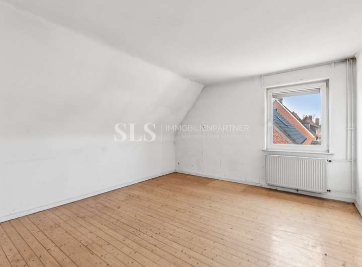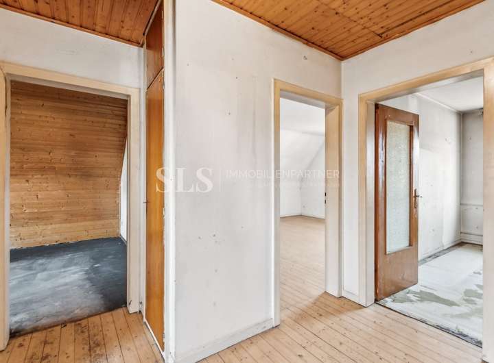 Das Dachgeschoss beeindruckt mit schönen Holzdielen, die den Räumen eine warme Ausstrahlung verleihen. Diese Etage bietet viel Potenzial zur individuellen Gestaltung, benötigt jedoch eine umfassende Renovierung. Der darüber liegende Dachboden ist großzügig bemessen und eignet sich hervorragend als zusätzlicher Stauraum oder als Ausbaureserve für die Zukunft.