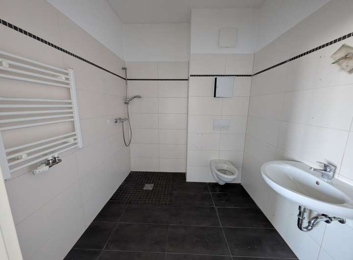 Die Bäder sind mit ausreichender Bewegungsfläche vor WC und Waschtisch, so dass auch Rollstuhlfahrer bequem rangieren können. Die Toiletten und Duschen haben Haltegriffe.