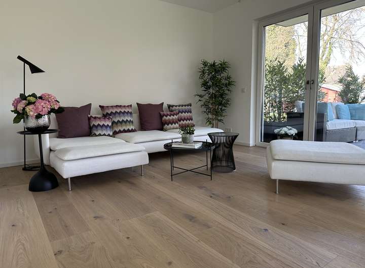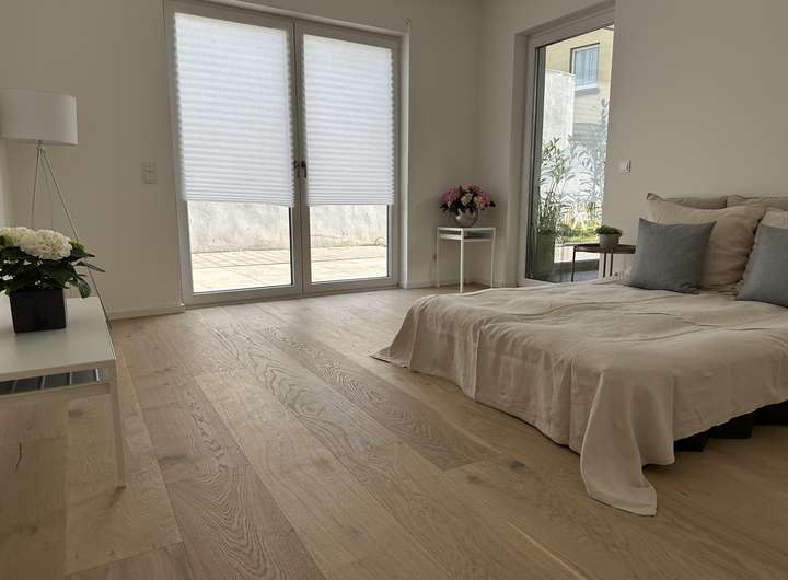 - Überall weiße bodentiefe Fenster 3-fach verglast,