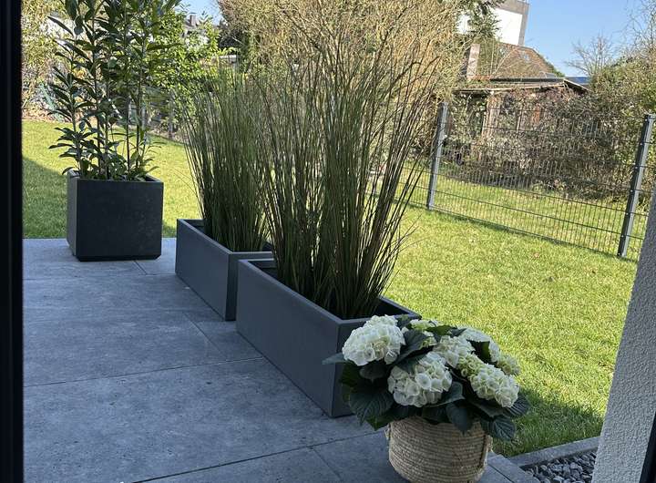 - Terrasse mit Garten sowie Licht-, Strom- und Wasseranschluss.