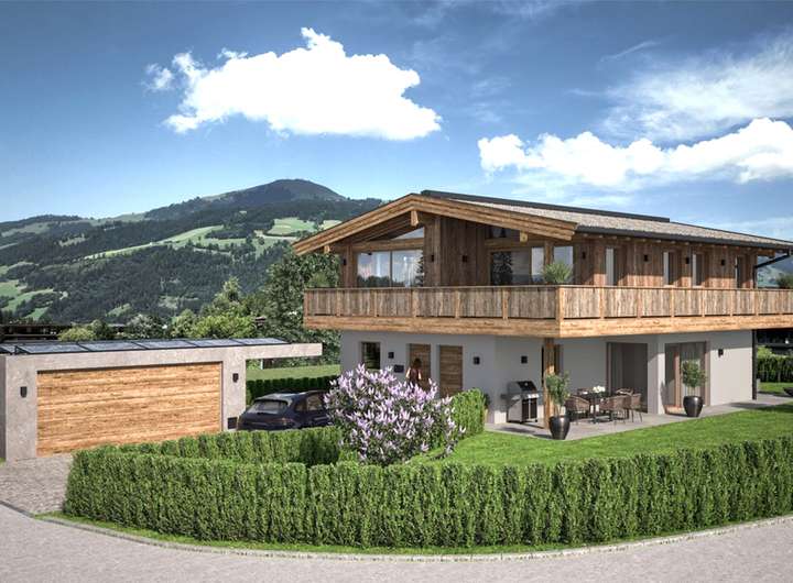 Es entstehen zwei getrennte Wohneinheiten, die sich stilvoll die Eingangsbereiche, eine Garage, ein Carport sowie Lagerräume teilen. Zudem lädt ein exklusiver Wellnessbereich mit Lichthof zum Entspannen nach einem aktiven Tag in den Bergen ein.