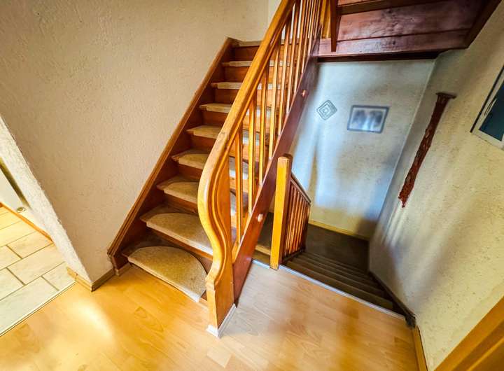 Die Immobilie verfügt über eine Gas-Zentralheizung aus dem Jahr 2022, Kunststoff-Isolierglasfenster (2006 und 1994), einen Keller sowie einen gepflegten Garten. Neben einer Einzelgarage (10.000 €) stehen sechs Stellplätze (30.000 €) zur Verfügung.