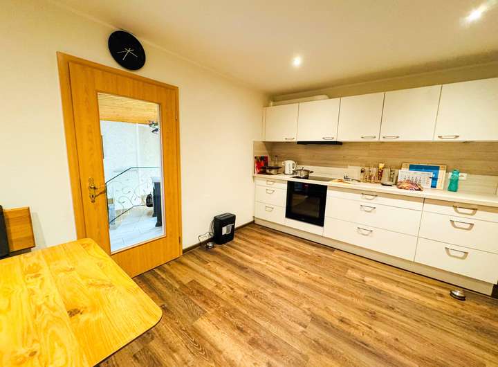 • Wohnbereich: Küche, Schlafzimmer, Badezimmer, Großzügiges Wohnzimmer (Anbau 1994)