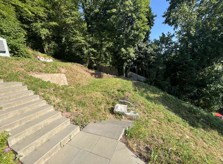 Die neue Treppenanlage mit Stufen bis zum Gebäude sowie ein großer Teil der zur Straße hin notwendigen Stützmauer werden von uns errichtet, diese Arbeiten sind inklusive der Neuverlegung des Abwasserkanals im Kaufpreis enthalten. Die übrigen Erschließungskosten werden vom Käufer übernommen.