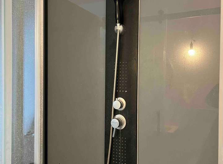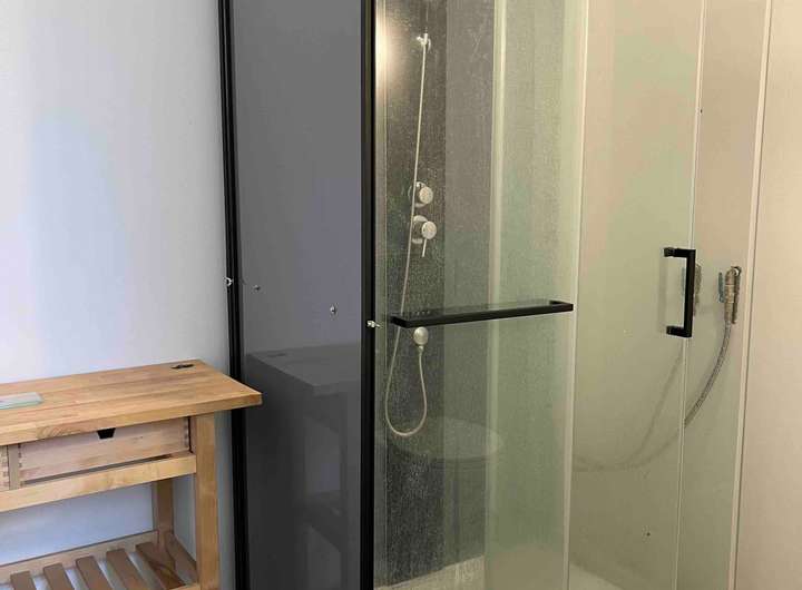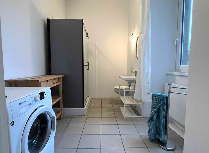 Das Duschbad mit WC ist 2023 erstellt worden. Ein Waschmaschinenanschluss und ein großes Fenster zum Hof sind hier vorhanden.