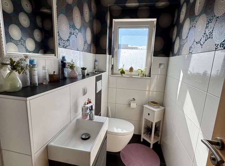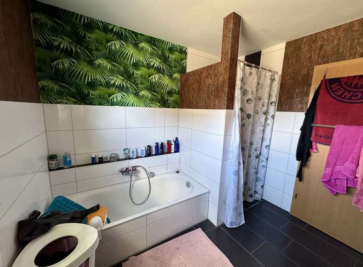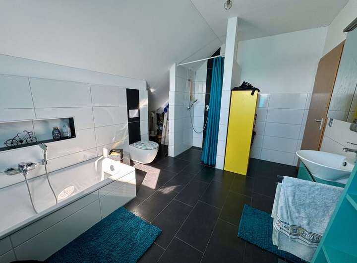 Die beiden modernen Badezimmer sind sowohl mit einer Badewanne als auch mit einer Dusche ausgestattet, sodass Sie sich hier nach einem langen Tag entspannen können. Zusätzlich steht ein Gäste-WC zur Verfügung, das den Komfort für Ihre Besucher erhöht.