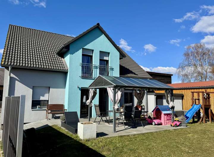 Dieses neuwertige, massiv erbaute Einfamilienhaus bietet Ihnen und Ihrer Familie auf großzügigen 162 m² Wohnfläche ausreichend Platz zum Wohlfühlen. Mit insgesamt 7 Zimmern, darunter 5 einladende Schlafzimmer sowie einem praktischen Ankleideraum, ist dieses Zuhause perfekt für die Bedürfnisse einer großen Familie.