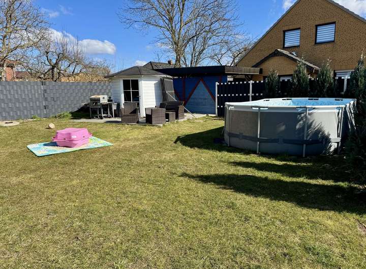 Das Grundstück erstreckt sich über 570 m² und bietet Ihnen ausreichend Freiraum für Ihre individuellen Gestaltungsideen. Die vorhandene Terrasse lägt zum Verweilen ein.