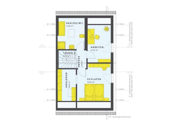 Dieses projektiert gestaltete Fertighaus Solution 124 von Living Haus in Erkelenz bietet dir ein Zuhause, das sich ganz nach deinen Wünschen und Vorstellungen richtet. Mit einer Wohnfläche von 124 m², verteilt auf zwei Etagen, und einem klassischen Satteldach mit 38 Grad Neigung, erlebst du hier architektonische Eleganz gepaart mit praktischer Raumaufteilung. Die vier Zimmer sind lichtdurchflutet und bieten Platz für die ganze Familie. Drei Schlafzimmer und ein Badezimmer sorgen für komfortables Wohnen, während eine großzügige Terrasse zum Verweilen im Freien einlädt. Ein Balkon verleiht dem Haus zusätzlichen Charme und erweitert deinen Lebensraum ins Freie.